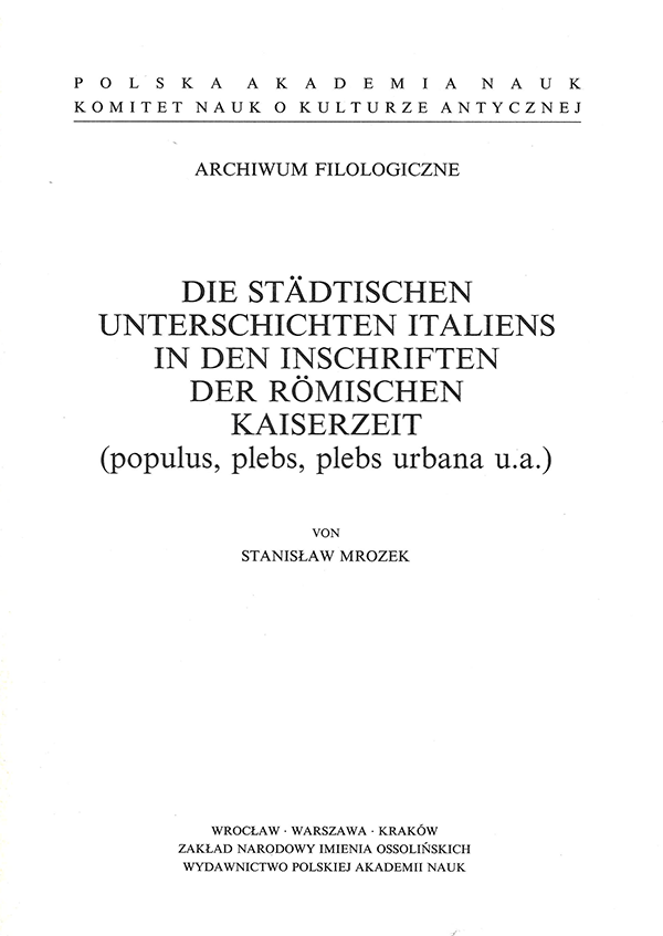 Die Städtischen Unterschichten Italiens in den Inschriften der Römischen Kaiserzeit (populus, plebs, plebs urbana u.a.) – Stanisław Mrozek